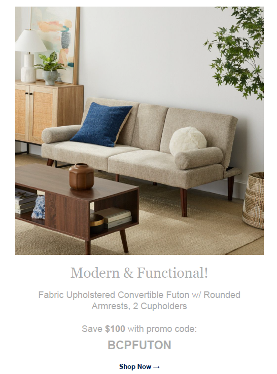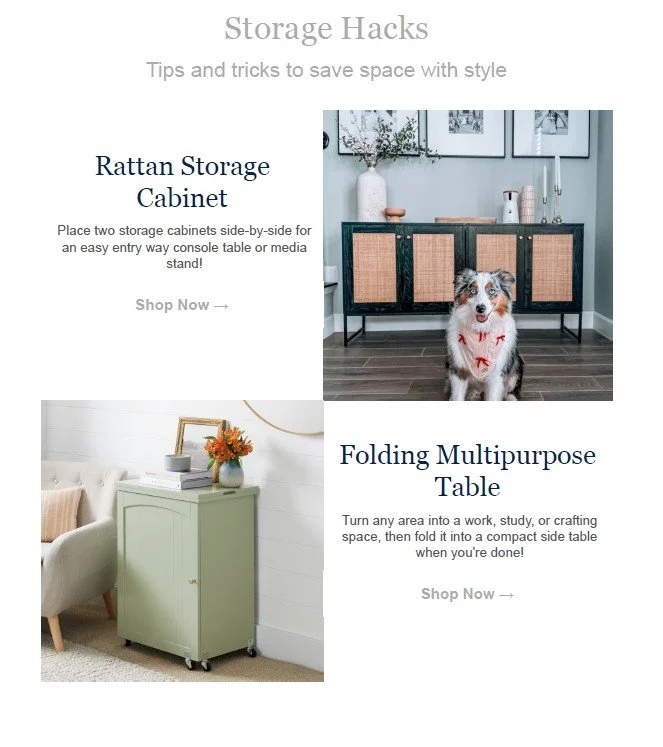Each email message represents a collaborative effort by me, the Brand Copywriter, and the email marketing team. We carefully crafted each email to elevate and expand our brand voice while still driving ROI and increasing click-through rates. During my tenure at BCP, the Email Marketing Team saw a gradual but noticeable year-over-year sales increase of 11 percent.